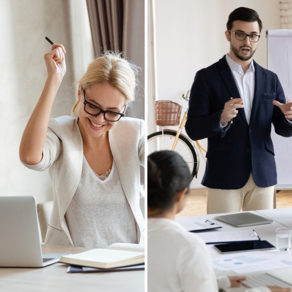 Our corporate public speaking classes are customized for each group. The training can be conducted in-person, virtually, or in a hybrid format with a combination of in-person and virtual training sessions.